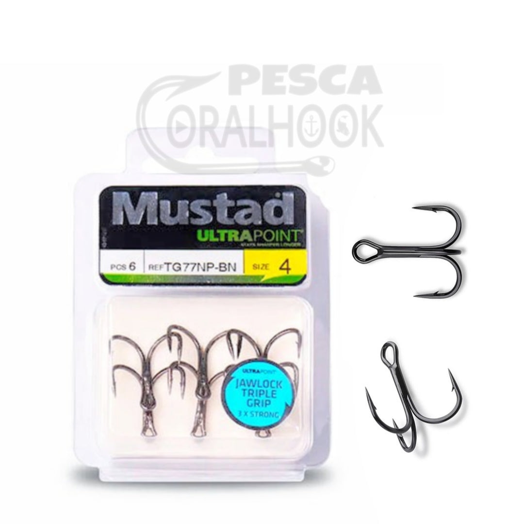 El Anzuelo Triple de Mustad TG77NP-BN está fabricado en acero con alto contenido de carbono, púas Jawlock 3X, para señuelo que necesitan armados potentes, y parejos para pescar a gran profundidad.