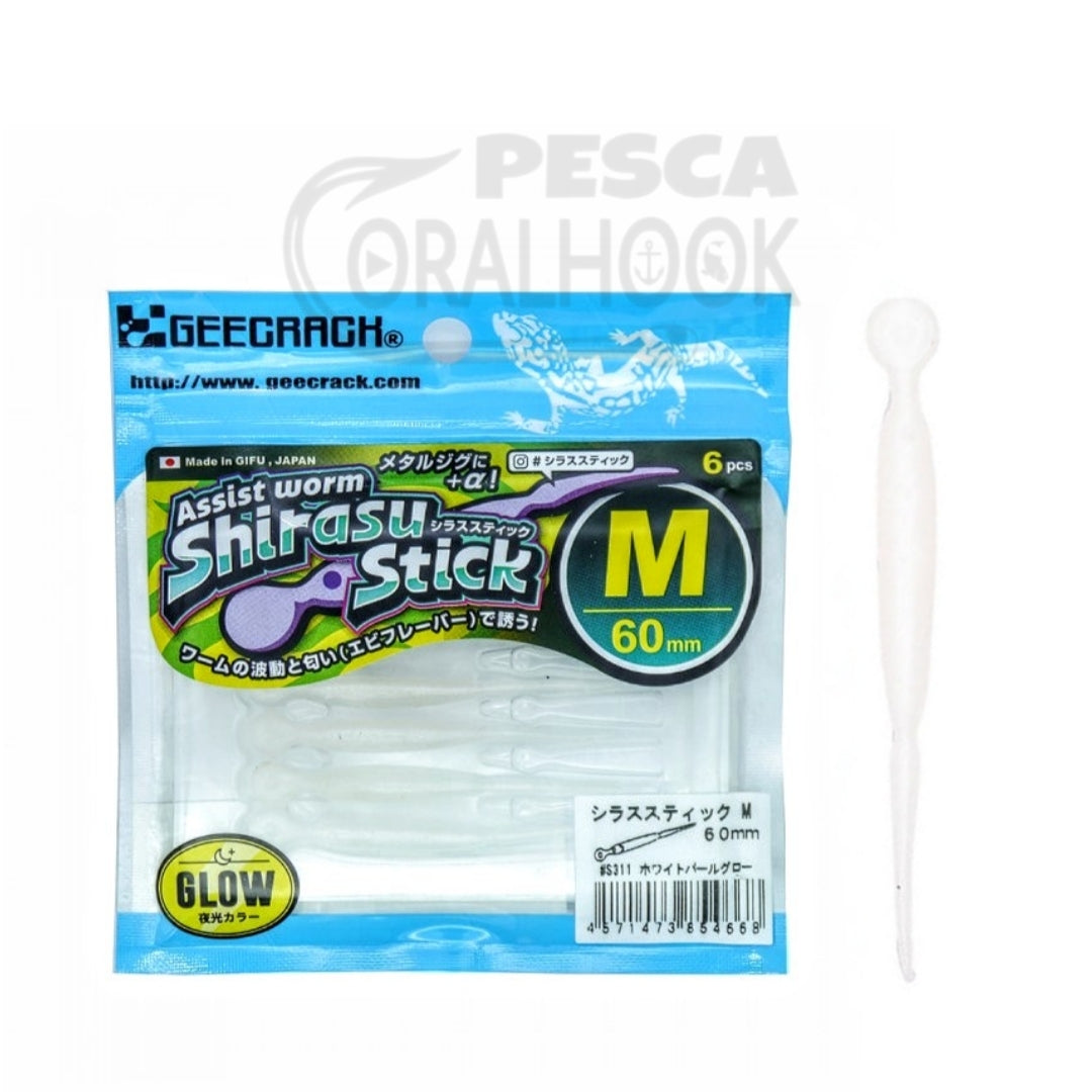 Los vinilos Shirasu Stick Assist Worm M de Geecrack han sido diseñados para mejorar la efectividad de tus jigs y multiplicar tus capturas. Su esbelta figura imita a la perfección un pez pasto, generando una vibración natural y emitiendo un irresistible aroma a camarón (SAF) que despierta el instinto depredador de los peces. Fabricados con un material elastómero altamente resistente, estos vinilos reducen el desgaste causado por los mordiscos, garantizando mayor durabilidad en cada sesión de pesca.