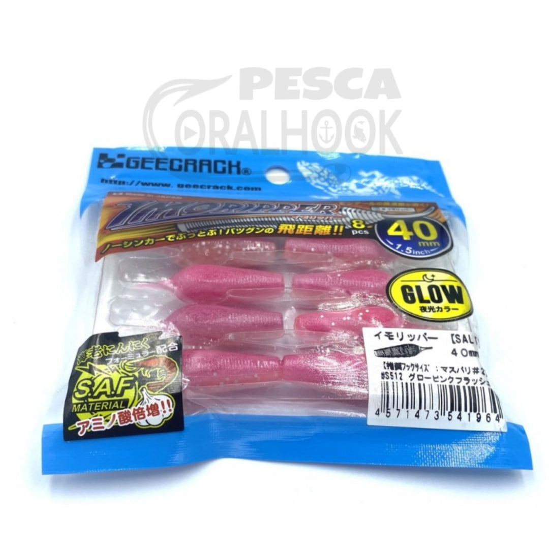 El Señuelo Imoripper 40 Salt de Geecrack es un gusano de forma cónica que sobresale hacia su parte baja o trasera, y esa particularidad le hace más fácil deslizarse hacia atrás cuando se usa sin plomada, y el cuerpo se balancea mientras cae, su diminuto pintail en la cola también crea ultra-microondas para atraer a los peces.