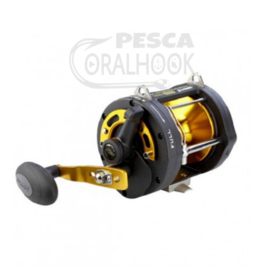 Carrete especialmente diseñado para la pesca con cebo o trolling en el mar. Robustos engranajes de acero inoxidable CNC. Frame de grafito de una pieza. Tapas laterales de polímero. Manija metálica de fuerza y balanceada, con grip anatómico de goma antideslizante. Chicharra de pique muy sonora. 4 rulamenes de presición. Freno a palanca, multiarandela de carbono, potente y muy suave, para peces grandes y luchadores. Carrete de aluminio forjado en frio de una sola pieza. Devanador sincronizado.