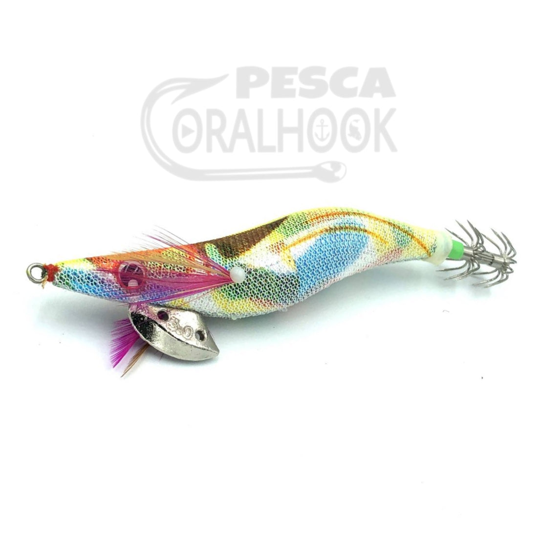 Jibidevón ideal para pesca de grandes cefalópodos. Equipado con una tela super reflectante y luminiscente, que unido al perfecto equilibrio de su peso proporcionan una efectividad máxima. Tejido X-Strong, mayor durabilidad y menor rotura. Corona ultra afilada de acero inoxidable con recubrimiento PTFE. Peso 19,50 grs. Longitud 105 mm