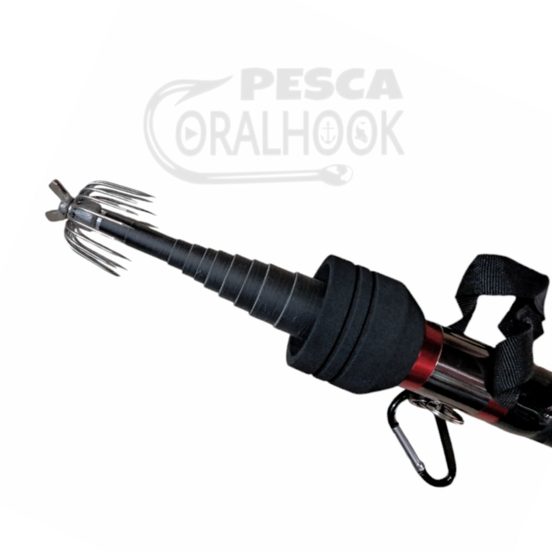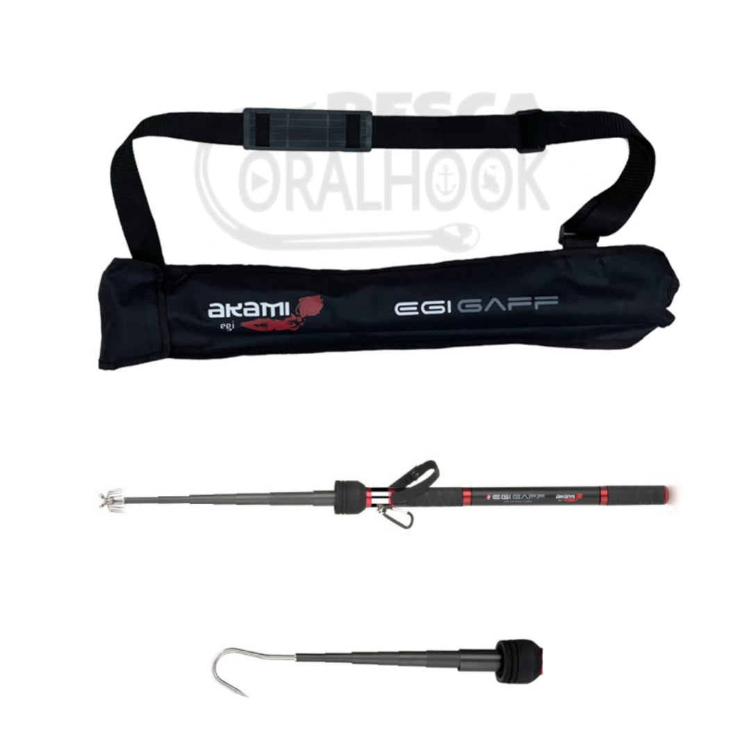Gancho akami Egi Gaff para cefalópodos o peces fabricado en carbono trenzado. Equipado con una corona y un gancho de acero inox (se pueden intercambiar a través de rosca). Plegado compacto de 60 CM no permite llevarlo colgado sin que nos moleste en acción de pesa y tenerlo siempre a mano en caso de captura. Protector de corona y grip de EVA antideslizante. Especial para pesca a Eging y Tip Run.