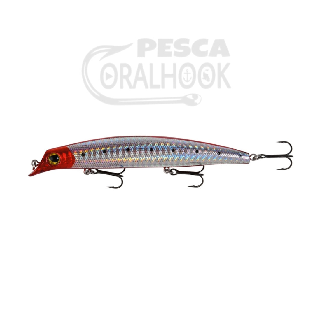 Este clásico minnow flotante posee el babero integrado en la cabeza y tiene una natación y comportamiento muy realista. Gracias a sus pesos móviles internos se consiguen grandes distancias en el lance y desde el arranque su natación es nerviosa y errática.