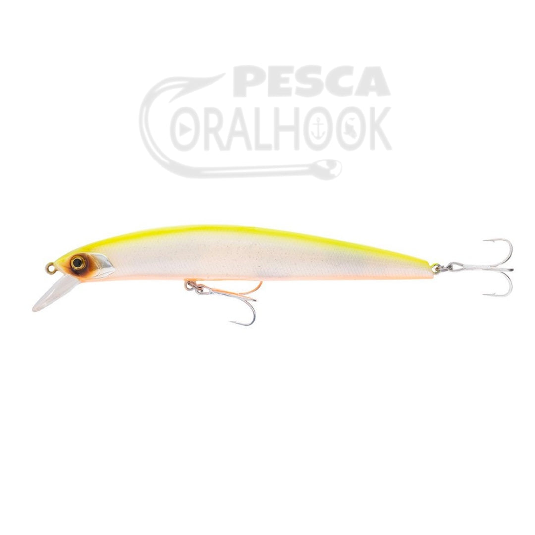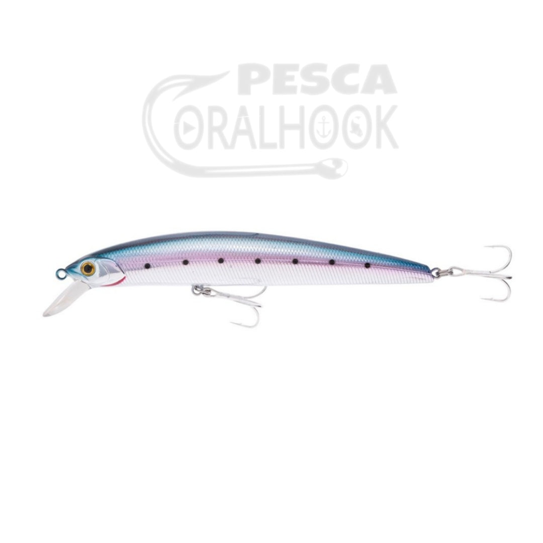 Poderoso minnow hundido para pesca en zonas de buen calado. Funciona muy bien en recuperaciones lineales a velocidad lenta y media. Su amplio wobbling, acompañado de un ligero rolling generará rápidas reacciones hasta en los más indecisos depredadores. Minnow fiable con una gran estabilidad por su reparto de pesos equilibrado y una distancia de lance extraordinaria.