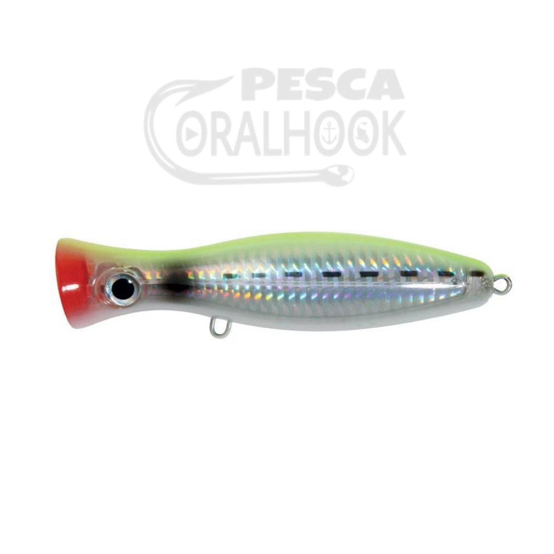 El Señuelo Managatsuo 120 de Hart es un Popper de cabeza sobredimensionada que produce un gran desplazamiento de agua con unas fuertes turbulencias y un gran chapoteo.