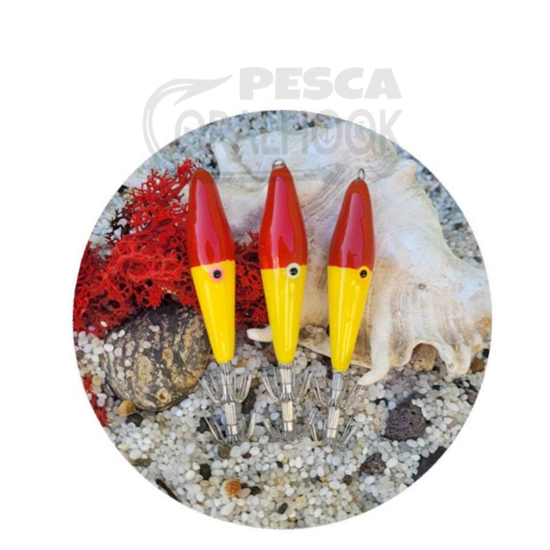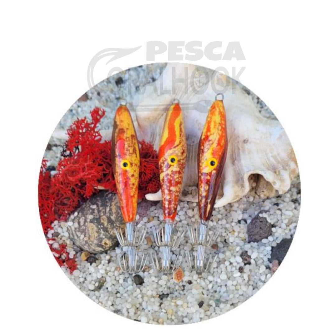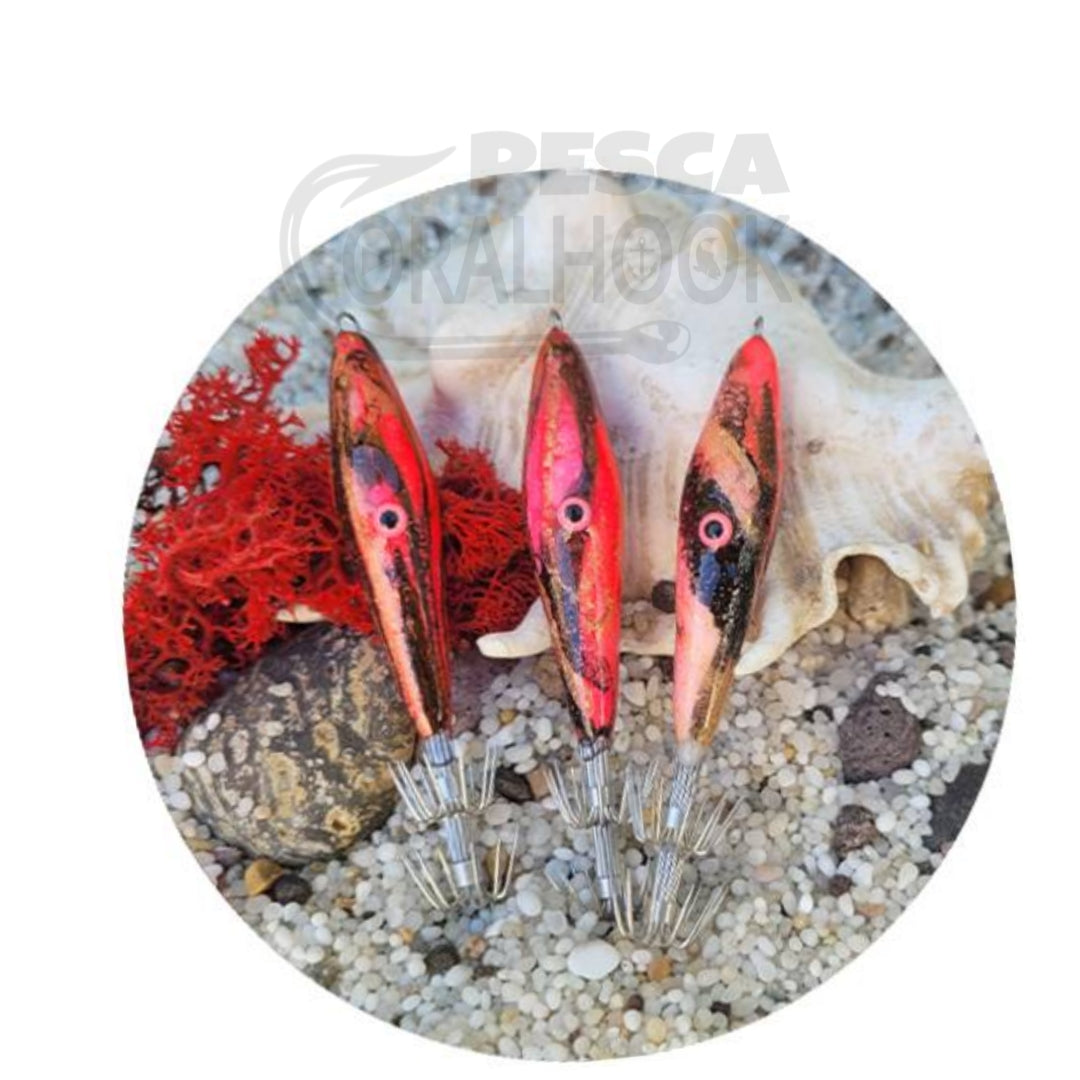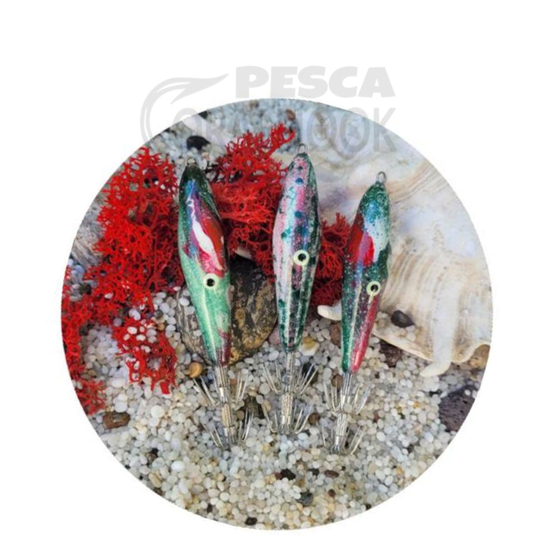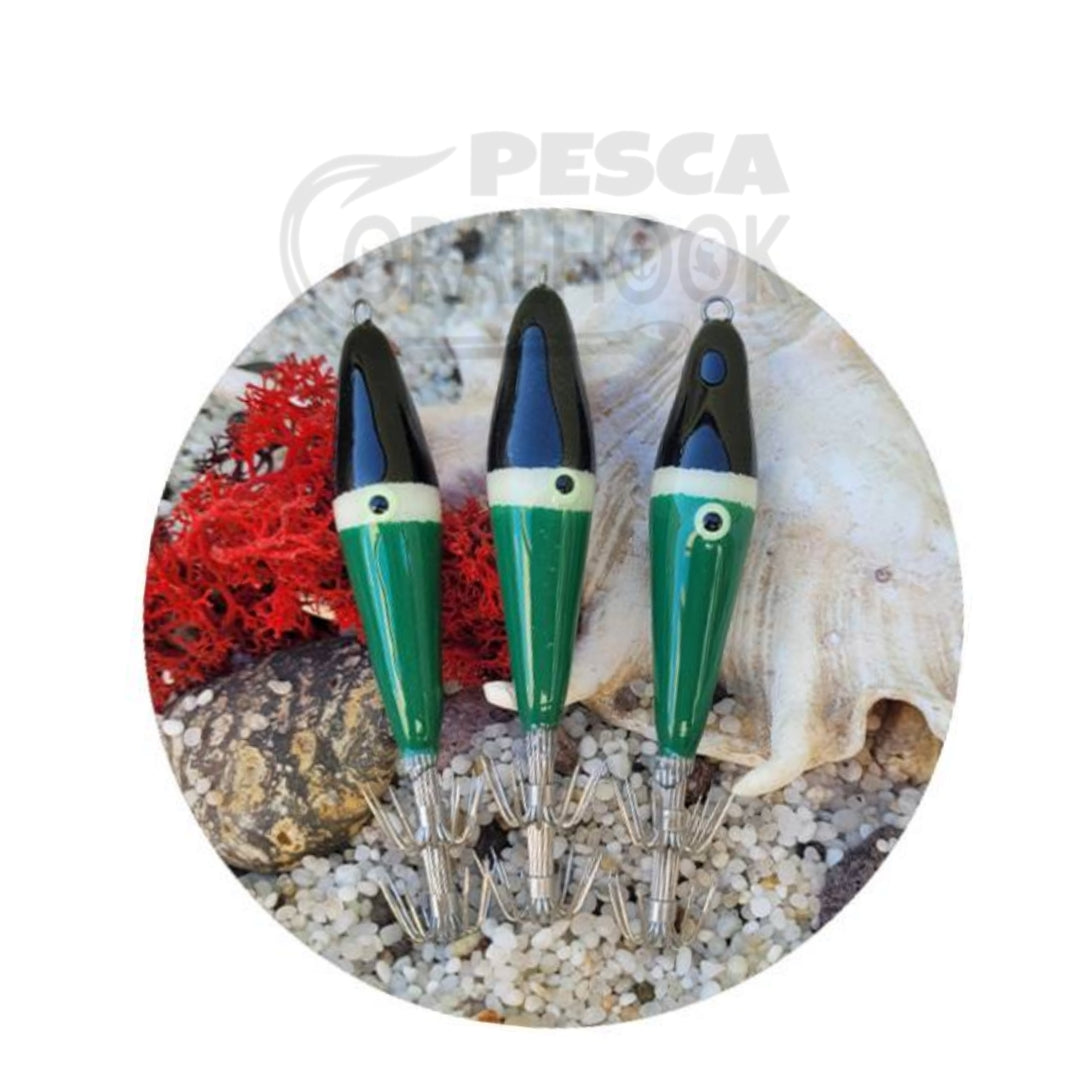 Hermosos, coloridos, fluorescentes e indestructibles para nuestros amigos calamares, hechos a mano en Italia con tres capas de resina epoxi.