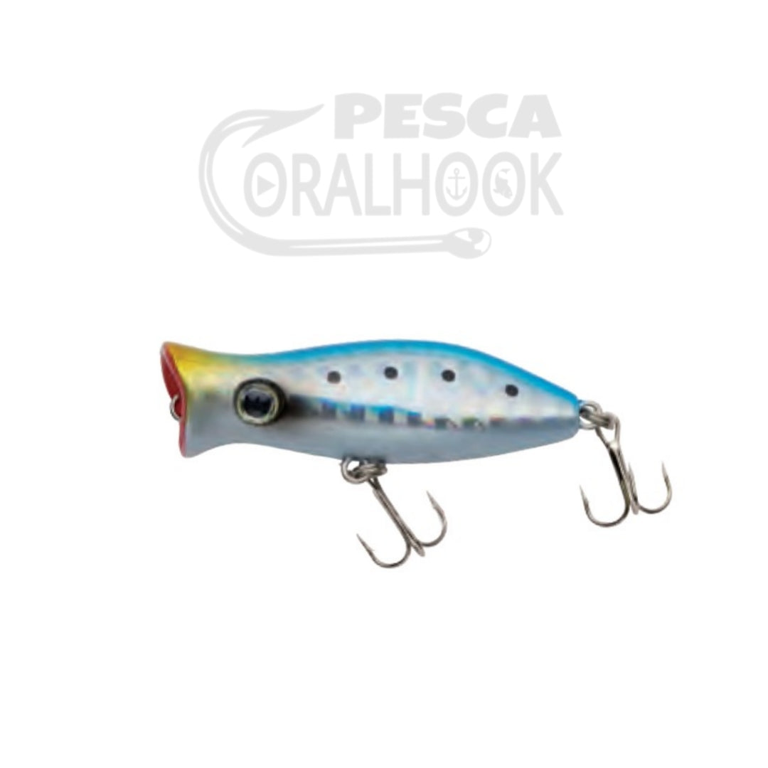 Pequeños señuelos para pescar en superficie X-Way MiniPop. Mini poppers con boca sobredimensionada que crea más ruido y explosiones de agua en superficie.