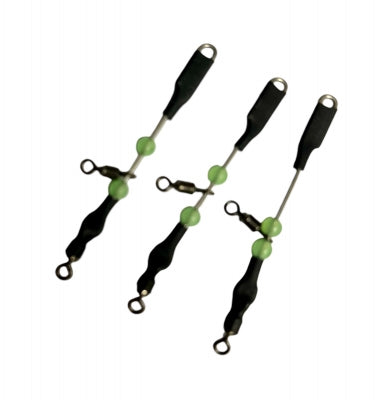Varilla en acero inox con enganche rápido para plomo, quitavueltas móvil para pescar anzuelo culero y torniquete fijo para enganche de la línea del pie.