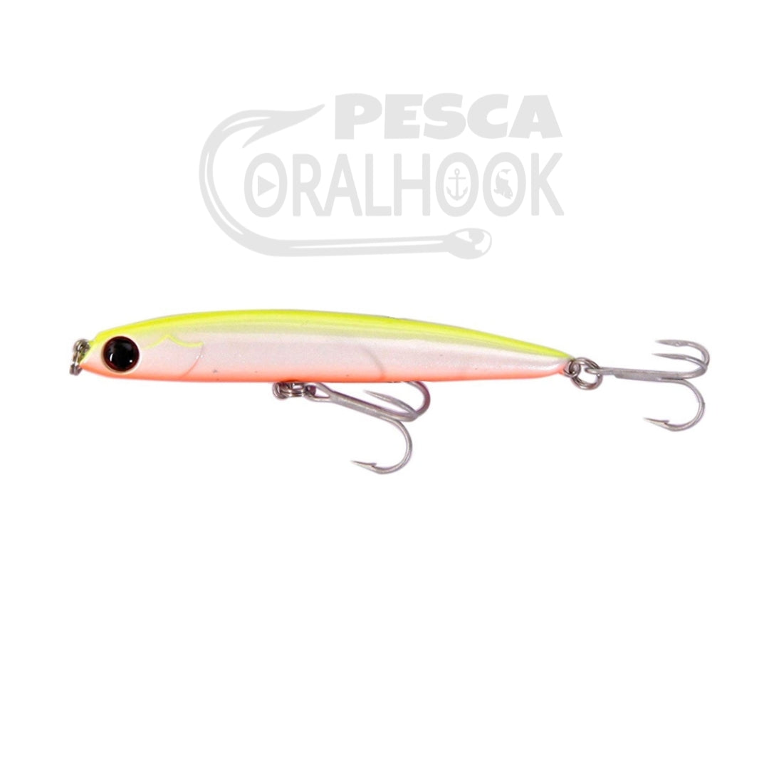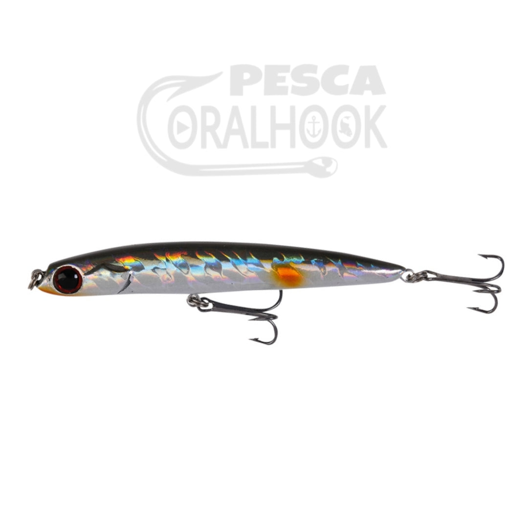 Pequeño paseante hundido con compensación interna por bolas de acero. Su lanzamiento es realmente espectacular, llegando donde no lo hacen los señuelos de su tamaño. Su movimiento es una mezcla de slalom y walking cerrado capaz de engañar lo mismo a lubinas, palometones y otros peces.