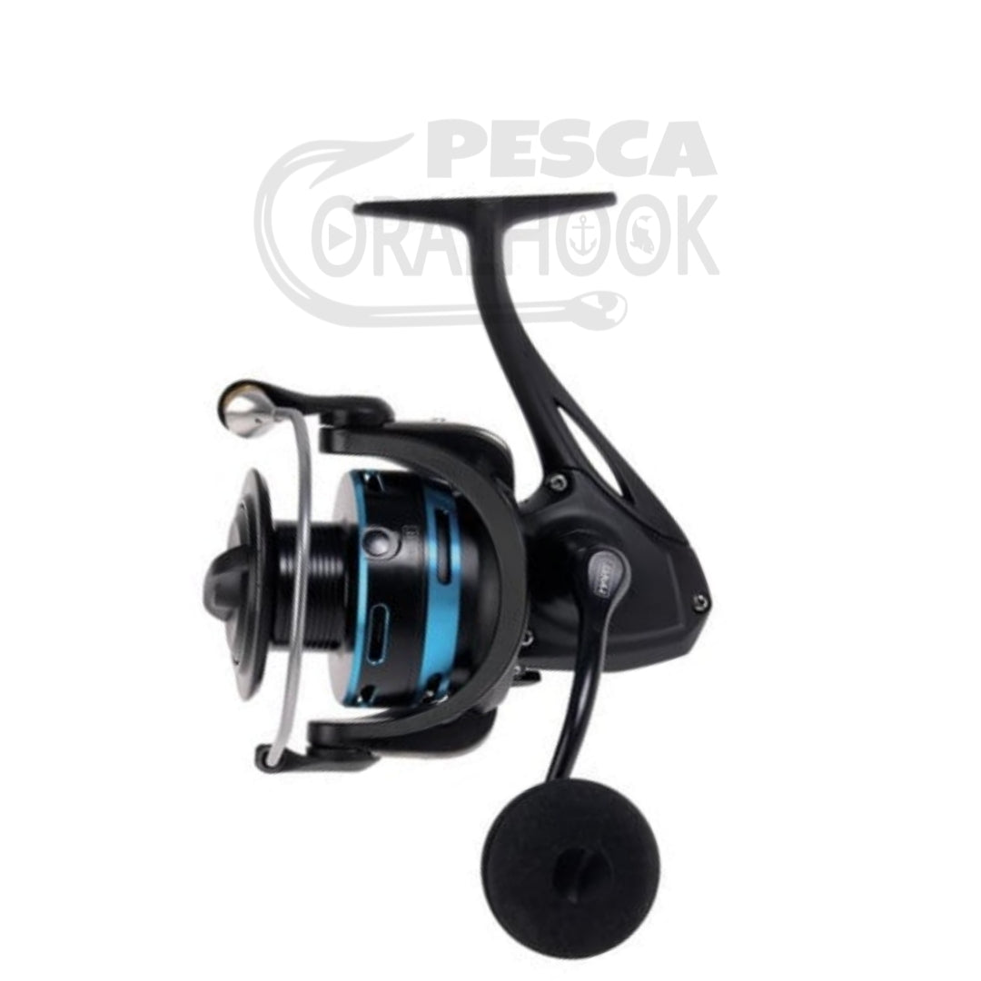 Manivela mecanizada en aluminio. Pomo ergonómico de EVA. Pick-up extra grueso con guía-hilos sobredimensionado integrado.