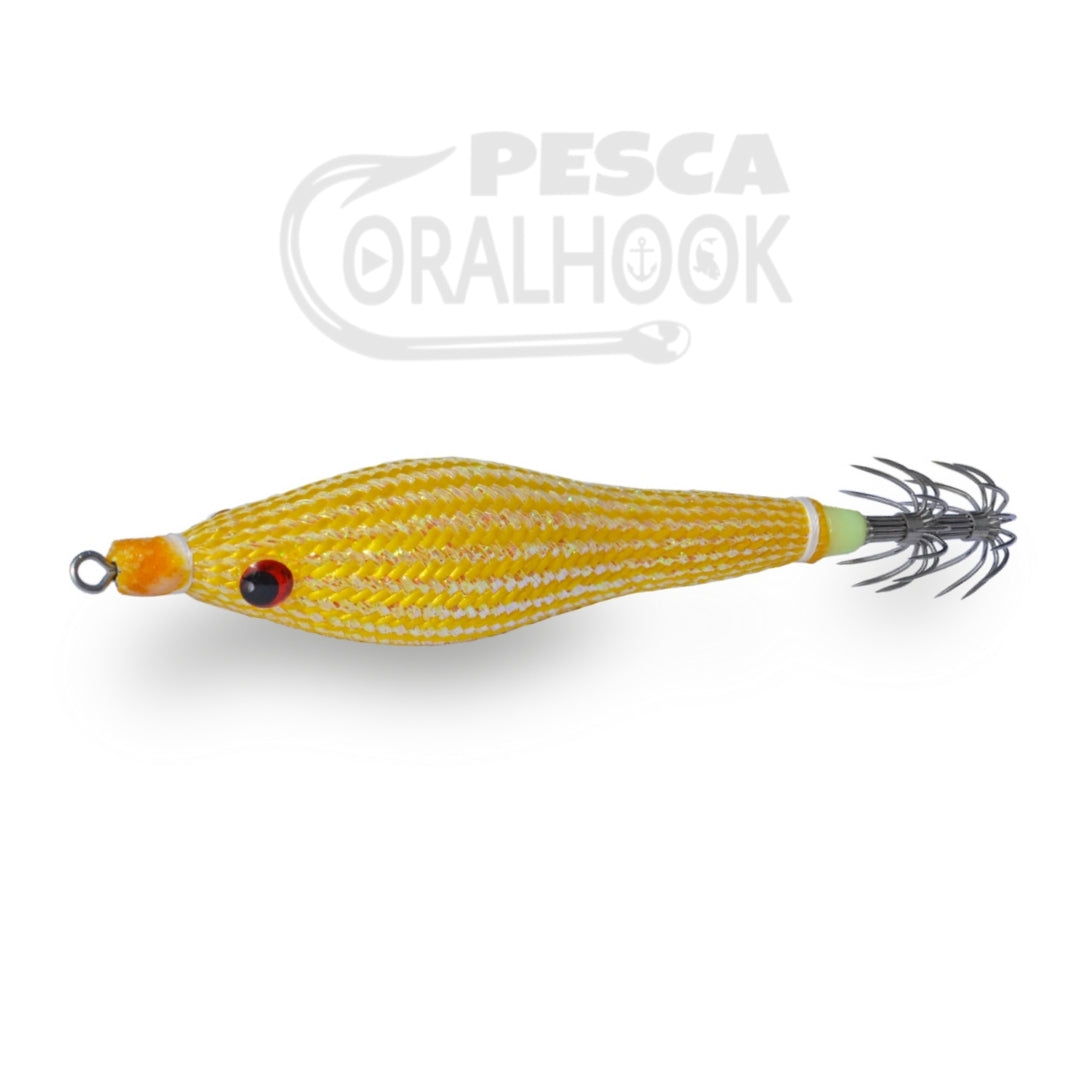 La Jibionera de DTD Soft Full Glavoc, está fabricada con cuerpo de silicona para darle un efecto suave al tacto, además cambia de color en el agua y cuenta con el efecto Glow (cuerpo luminoso). La Jibionera Soft Full Glavoc de DTD viene armada con dos fuertes coronas de acero inoxidable, para mayor seguridad y durabilidad. Gracias a la purpurina siliconada que posee la jibionera emite destellos que hacen mucho más fácil e instintiva la captura de los cefalópodos.