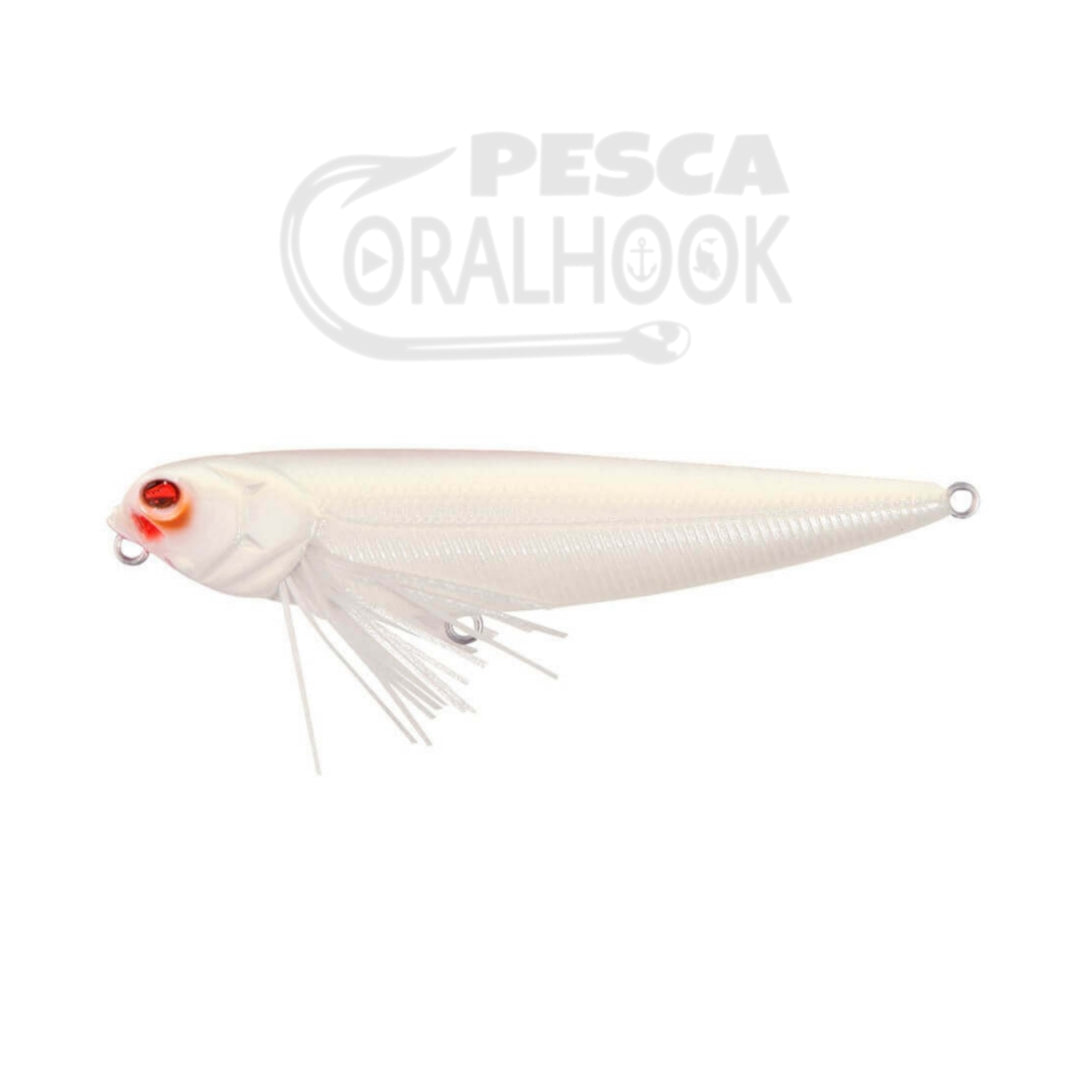 Paseante para acciones de zigzag o deslizamientos en superficie. Innovadoras barbas de faldilla de silicona en las agallas, que provocan agitación adicional y efectos de pez herido. Anzuelos Black Nickel 2X. Anillas inoxidables extraplanas. G-Balls con efecto sonajero para atraer la atención. Pesos de tungsteno.
